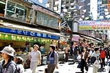 | 南大門を基点に周囲約2000坪の面積を誇る韓国で最も歴史を持つ南大門市場。この市場には大小約1万にも及ぶ店舗が立ち並んでいます。この市場は主に日用品や食料品、衣料品がメインになっていて、韓国中から仕入れに訪れる。 |