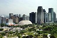国会議事堂や証券取引所など韓国の政治と経済の中心地、汝矣島には1985年にオープンした「63ビル」があります。このビルは高さ264mで、地上60階、地下3階の全63階の高層ビル。全面二重反射ガラスで覆われているので、太陽の光を浴びると金色に美しく輝きます。韓国内ではもちろん外国人観光客からも人気で、2006年 7月 15日には展望台もリニューアルオープンしました。正面入口の近くには案内カウンターがあり、パンフレットなどはここでもらえます。入り口から左奥にチケットボックスがあり、展望台、水族館、映画館を利用する場合はここでチケットを買います。