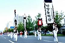 | 安養という名称は高麗の太祖王建によって創建された安養寺から由来しています。新羅の孝恭王4年(900)に弓裔の後裔である王建が衿州(始興)と果州(果川)などの地域を訪れるために三聖山を通りかかりました。この時、山頂の雲が 5 つの光で彩られたの見て不思議に思い使いを送り調べさせたら、雲の下で 能正という年老いた僧に会って詳しい話を聞いて見ると王建の志と同じだったので、この地に安養寺を創建するようになったと言います。この安養寺によって安養という名称が誕生しました。朝鮮時代に正祖大王が父である思悼世子の 陵幸のために仮設した萬安橋の「安」と共に、「養」は後世の人々に人倫の根本である孝の意味を生かすために使われたものと見られます。 |