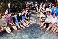 儒城温泉(ユソンオンチョン)は、大韓民国の大田広域市郊外にある温泉。大都市の大田近くにあるため数多くの旅館、ホテル、飲食街が建ち並ぶ。近くに2002年のワールドカップの会場にもなった競技場があります。大田(テジョン)中心部からも近いので、夜は繁華街としても有名。また、近くには名山として有名な鶏竜山(ケーリョンサン)があり、登山を楽しむ人たちでも賑わいます。日本の温泉街のような風情は無く、地方都市の繁華街の中にある温泉地となっています。最近、大田市内の地下鉄が開通したので、大田駅から地下鉄で儒城温泉に行くことも可能になりました。