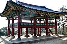 山城に沿って峠を越えると、世祖4年(1458年)に創建された霊隠寺に行くことが出来ます。霊隠寺の前には蓮池があり、錦川の景観を望むことができ、公山城でもっとも美しいところです。また、公山城で一番大きい楼閣として知られている臨流閣は、散策路を上がりきったところにあります。 |
