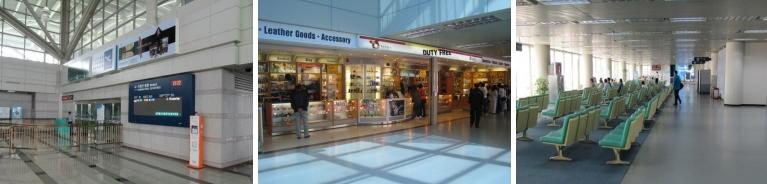 携帯レンタル、喫煙所等の便宜施設の他、韓国の格安航空外社である済州航空やイースター航空などの発券カウンターが