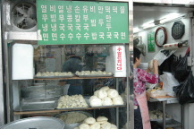 ショッピングの人気スポット東大門の東側、東平和市場の中に東大門の商売人御用達のいつも店先から湯気を漂わせる小さな餃子屋があります。「クギルブンシク」の餃子は、創業以来ずっと商売人達のお腹を満たし、ほのかに甘いチンパンはホッと一息、心を満たしてくれました。「クギルブンシク」の餃子の具はすべて手作り、チムパンにいたっては中身の小豆餡、皮まで自家製。小豆餡は小豆からグツグツと煮ていきます。めてお店の入り口は、そんな素朴でやさしい味の餃子やチンパンを求めてやってくる常連さんがひっきりなしにやってきます。