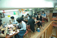 お店の二階には小さいながらも座って食事ができるテーブルがあり、お店の代表メニューである餃子やチンパンと、素早く食べることのできるグクス(麺)やマンドゥック(餃子スープ)などを組み合わせて食べる人たちで賑わっています。「クギルブンシク」の朝は早く、早朝6時から営業が始まり、その代わり、夜は6時にはお店を閉めてしまいます。この点に注意して、朝食や昼食、またはおやつ代わりとして、20年以上続く伝統の味をぜひ一度味わってみてください。