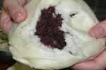 お店で直接豆を煮て作る手作り小豆餡がたっぷり入った手の平サイズのチムパンは、小豆餡が甘さ抑え目ですので、軽く食べられ、女性でも2つはいけるおいしさ。 皮は自然発酵で柔らかく、ほんのりと甘味があり皮だけそのまま食べても美味。