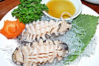 お刺身、アワビのお粥、海鮮すき焼き、海鮮お好み焼き等