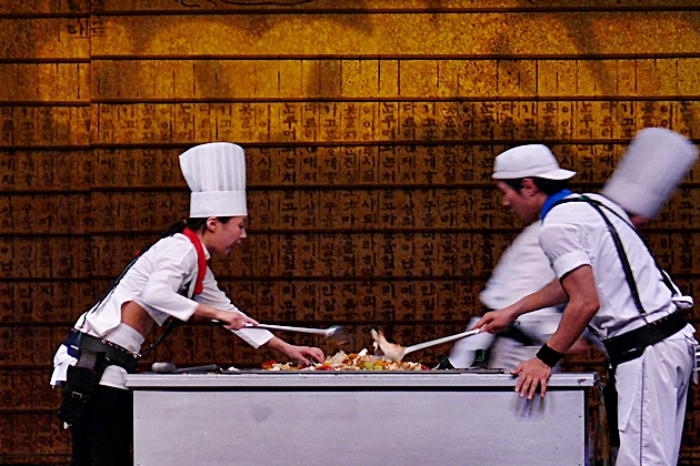 ナンタとは「乱打」の意味。つまり、とにかく「叩いて叩きまくる」をコンセプトにしています。包丁、まな板、野菜、ごみ箱などとにかく叩いて叩きまくってます。 野菜が乱れ飛んだり火花が散ったりサムルノリのリズムに合わせた響きにいつのまにか熱くさせられます。