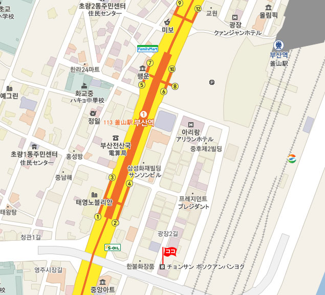 釜山広域市 東区(ドング)草梁1洞(チョリャンイルドン)1213-14番地、プラザホテル 9階