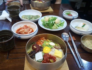 普通の安いビビンパはフードコート等でよく食べてましたけど ユッケ入りの高級ビビンパは初めてだったの感動物でした。 ごはんとユッケと野菜が絡んでとっても美味しかったです。 店内の雰囲気もよく、清潔で落ち着きました。