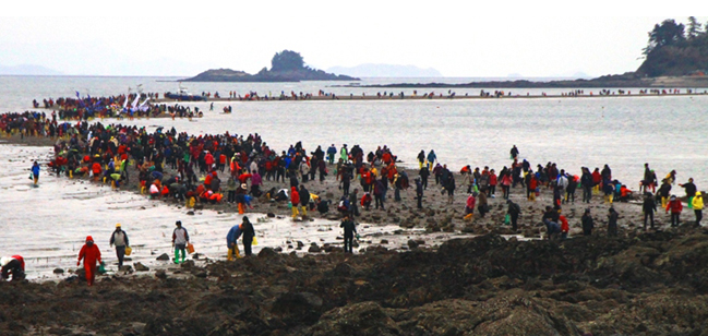 海割れは干満差が大きいために起きるもので、祭りでは海の道を歩いたり、