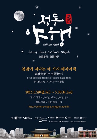 ソウル市中区は、2015年5月29日(金)から30日(土)までの2日間、 夜のお祭り「貞洞夜行」を開催すると発表しました。 このお祭りは、貞洞を訪れる観光客に様々な体験や舞台を楽しんでもらうために 企画されたイベントで、徳寿宮をはじめ、ソウル市立美術館、培材学堂歴史博物館、 警察博物館などが午後10時まで一般公開されます。 一部の文化施設は午後8時までの公開となっており、事前の確認が必要です。 ◆貞洞夜行祭り ・ 期間:2015年5月29日(金)~2015年5月30日(土) ・ 場所:ソウル特別市中区貞洞一帯 ・ ホームページ : http://culture-night.junggu.seoul.kr/_jpn/