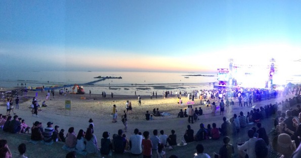 東洋唯一の貝殼粉からなる白い砂浜を誇る大川海水浴場で開催され、