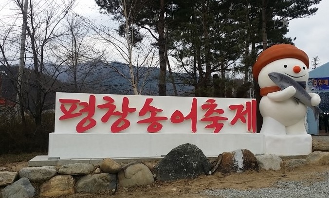*第1祭り会場(平昌マス祭り):江原道 平昌郡 珍富面 五台川一帯(珍富市外バスターミナル前)