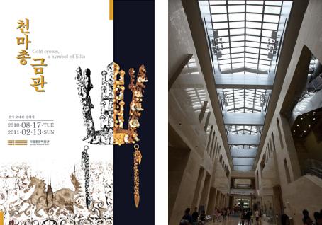 新羅の都であった慶州の天馬塚において、1973年に発掘された黄金の 王冠と腰帯などが36年ぶりにソウルで公開されます。これは8月31日から 開催予定である「皇南大塚企画展」に先駆け、華やかな新羅文化を代表する 2つの黄金宝物を一緒に鑑賞できるようにしたものです。 黄金の王冠は空と地を表した立て飾りと生命を意味する勾玉で装飾され、 腰帯には同じく勾玉と富や長寿を表した飾りが施されています。 王冠、腰帯は共に国宝に指定されています。 公開は来年2月中旬まで。 期間:2010年8月17日~2011年2月13日 場所:国立中央博物館 古代館 新羅室 時間:火、木、金9:00~18:00 水、土9:00~21:00 日、祝9:00~19:00 休日:月曜日 問合せ:02-2077-9000 アクセス:地下鉄4号線二村(イチョン、Ichon)駅2番出口 徒歩2分
