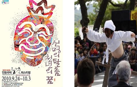 朝鮮時代の文化が今でも息づく街.安東(アンドン)で仮面劇をテーマにした 国際的フェスティバルで、毎年9月の最終金曜日から10日間に亘って開催されます。 仮面劇とは、庶民の間の娯楽として、生活の苦しさや支配階級への不満を 面白おかしく表現した伝統芸能で、風刺の対象にされた貴族もこの日ばかりは 庶民の無礼を笑って許したそうです。 現在では、世界各国の仮面劇や民俗舞踏もあわせて見ることができ、 仮面の展示や、民俗遊び、仮面作りなど様々なプログラムが用意されています。 期間:9月24日(金)~10月3日(日) 会場:安東市内一帯(安東文化芸術の殿堂前フェスティバル会場、河回村) アクセス:東ソウルバスターミナルから安東(アンドン)行きバス乗車、 安東市外バスターミナルからフェスティバル会場まで徒歩約10分