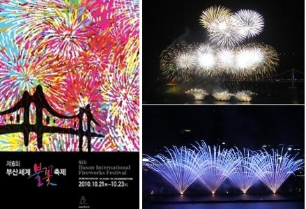 釜山の秋の夜空を彩る「第6回釜山国際花火フェスティバル」が 夜景の名所として知られる広安里(クァンアンリ)海水浴場一帯で行われます。 フェスティバルは3日間に亘って行われ、初日にはスーパージュニア、BOAなど 人気アーティストによる祝賀公演も開催されます。また世界各国の花火ショーのほか 花火とレーザーによる最先端のマルチ花火ショーも圧巻です。 期間:2010年10月21日(木)~23日(土) 会場:広安里海水浴場一帯 問合せ:051-1330 アクセス:釜山地下鉄2号線金蓮山(クムリョンサン・Guenmyeonsan)駅下車。1番出口から徒歩10分 プログラム 10/21:開幕式(19:00~19:05)、祝賀公演(19:05~20:30) 10/22:音楽公演(18:00~19:50)、海外招待花火ショー(20:00~21:00) 10/23:音楽公演(18:00~19:50)、最先端花火ショー(20:00~21:00)