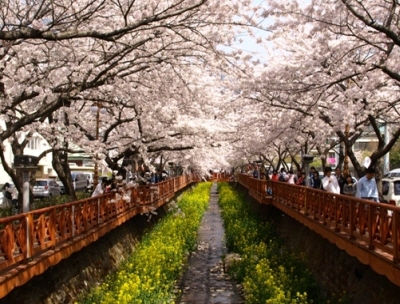 鎮海には34万本以上の桜の木があり、特に鎮海駅から徒歩5分の距離にある