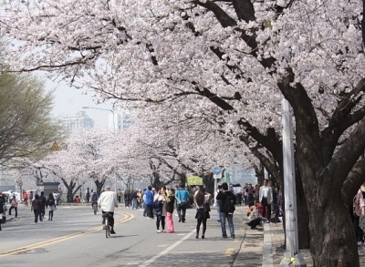 ソウルで最大の桜祭りとして知られるソウル.汝矣島(ヨイド)の桜祭りが