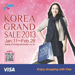 毎年恒例、外国人の為のショッピング観光フェスティバル【コリアングアンドセール】が今年も開催されます。外国人観光客が多く訪れるソウルや主要都市のショッピング、宿泊、飲食などの割引や特典が盛りだくさんです。また特別イベントも目白押しで1月31日には【K-popコンサート】が開催予定なので是非チェックしてみて下さい。開催期間は1月11日~2月28日までの49日間! 期間:2013年1月11日~2月28日(49日間) 場所:ソウル、主要自治体 対象:外国人観光客及び韓国内居住外国人 特別イベント: 【Event1】 空港ウェルカムイベント 日程:2013年1月11日(金)~17日(木) 場所:仁川国際空港1階到着ロビー 【Event2】 オープニングイベント 日程:2013年1月11日(金)午後3時予定 場所:ソウル明洞外換銀行本店前 KEB PLAZA 【Event3】 スペシャルウィークイベント 日程: [Week 1] ファッションウィーク (2013年1月11日〜1月17日) [Week 2~3] ビューティウィーク (2013年1月18日〜1月31日) [Week 4] エンターテイメントウィーク(2013年2月1日〜2月7日) [Week 5] フードウィーク (2013年2月8日〜2月14日) [Week 6] エンターテイメントウィーク (2013年2月15日〜2013年2月21日) 場所:明洞外換銀行本店前コリアグランドセール専用ブース 【Event4】 K-popコンサート 日程:2013年1月31日(木) 場所:後日確定 公式サイト: http://www.koreagrandsale.co.kr/usr/Index.do?lang=ja(日本語) 現地での事情により現在とは記事の内容が異なる可能性がありますのでご了承下さい。