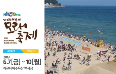 韓国を代表する海水浴場として人気の釜山・海雲台(ヘウンデ)海水浴場で 砂をテーマにした【海雲台砂祭り】が6月7日(金)から4日間に亘って開催されます。 祭りでは国内外から招待されたサンドアーティスト達の作品の展示や 開幕祝賀コンサート、伝統公演、韓国空軍特殊飛行隊によるアクロバティックエアショー、 サンドボート体験、海洋体験など様々な行事が開催されます。 ・開催日程:2013年6月7日(金)~10日(月) ・会場:釜山・海雲台ビーチ一帯 ・アクセス:釜山地下鉄2号線海雲台(へウンデ)駅3又は5番出口から徒歩約10分