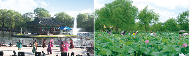 公園と蓮池の一帯では蓮の花フェイスペインティングや蓮の葉茶の試飲、蓮の花石鹸作りなど常設で体験イベントが開かれ、また多様な公演と蓮の花写真展、蓮の花絵画コンテスト作品展などを見ることもできます。