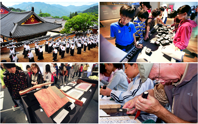 このお祭りの代表イベントは大蔵経の原版の展示、海印寺ソリ道体験、板刻体験、