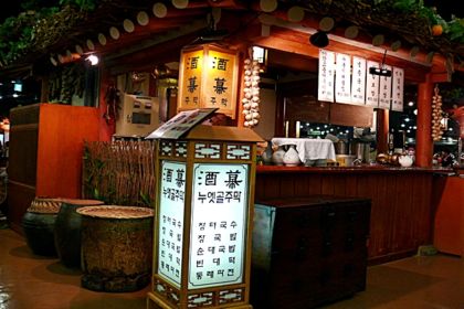どのお店も朝鮮時代の食堂っぽく飾りつけされていておもしろいですよ。
