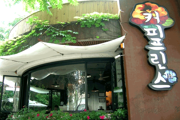 韓国で2007年夏に放送され、視聴率30%を超える人気を集めた「コーヒープリンス1号店」のメインロケ地となったカフェが学生の街.弘大(ホンデ)にあります。元々こちらのカフェは、庭が付いた一軒家を改造した独特の雰囲気を持った学生や外国人から人気があったカフェでした。その後老築化が進み、改装工事を行う段階でドラマ制作陣からロケ地としての使用の打診を受け、オーナーがカフェを丸ごとセットとして貸すことに同意し全面改装したもの。ドラマ撮影時からカフェの前にはドラマファンが集まりだし、ドラマ終了後も韓国国内だけではなく、ドラマが放送されたアジア各地から観光客が訪れる観光名所となりました。