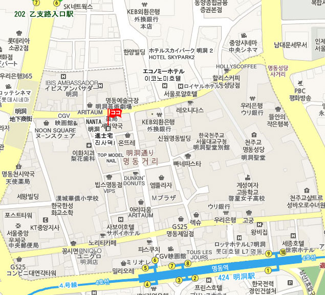 現地 アクセス  地下鉄2号線ウルチロイック(乙支路入口・Eljiro-1(il)ga・202)駅6番出口から徒歩約8分