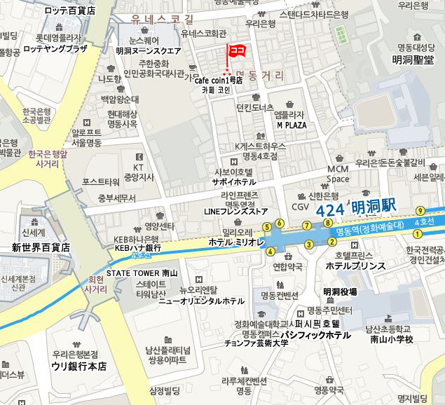 現地 アクセス  地下鉄4号線明洞(Myeong-dong)駅 6番出口 徒歩5分