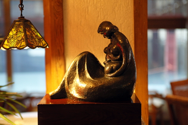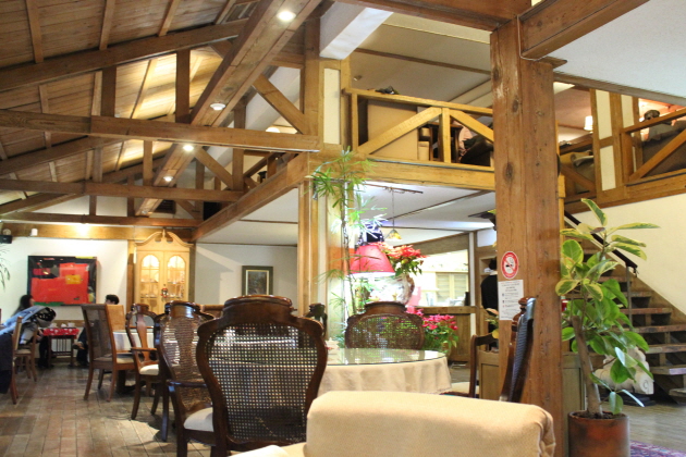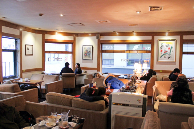 ソウル一の繁華街・明洞に位置する cafe coin 1号店は、自家製ワッフルや 韓国式のカキ氷のピンスなどのデザートが人気の老舗カフェで、ゆっくりとお茶を楽しみたい地元の人や外国人観光客の人気を集めています。抑えめな照明の店内は趣のあるテーブルセットやソファが置かれ、またどっしりとした家具や絵画が飾られ、明洞の繁華街にありながら、ゆったりとした時間が流れています。セルフ式が主流のチェーン展開されているカフェとはまた違ったホッとできる素敵な空間です。