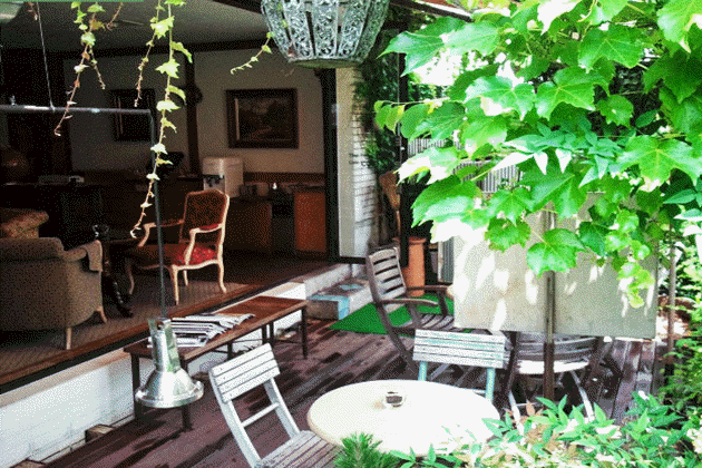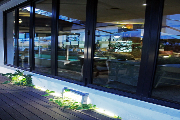 暖かく天気の良い日に開放されるテラス席。最上階に位置し、テラスのテーブルでも飲み物の注文が可能です。 喫煙エリア