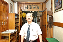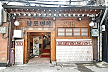 韓国の麺料理といえば、冷麺(ネンミョン)、カルグッス、チャンチククス、ラミョン、ウドン、ジャジャンミョン、チャンポンなど、いろいろありますが、やはり冷麺とカルグッスが代表格でしょう。その証拠に、例面専門店やカルグッス専門店があちこちにあります。この「南浦麺屋(ナンポ・ミョノック)」は、そんな冷麺の専門店の代表格。40年以上の伝統を誇る平壌式冷麺とチェンバン(平壌式麺入り鍋)を食べることができる有名なお店です。入り口には冷麺に欠かせないトンチミ(水キムチ)を漬けてある瓶がずらりと並んでいます。