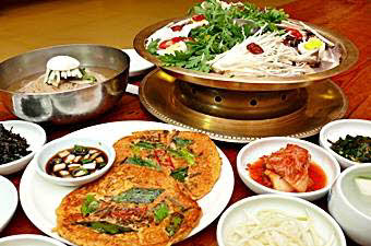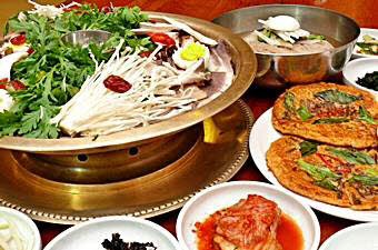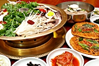 冷麺、プルコギ、海鮮お好み焼、カルビスープなど