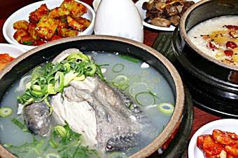 参鶏湯、あわびのお粥、鶏と野菜鍋、海鮮お好み焼など