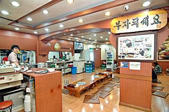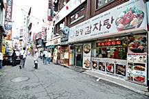 日本でも最近目にするようになったカムジャタン専門店。豚の背骨部分の骨付き肉とジャガイモ、野菜のメイン材料を、唐辛子やニンニク、しょうが、味噌などの調味料でぐつぐつ煮込んだもの。最初は豚の骨に目が行ってしまい食べるのをためらう人もいるようですが、食べてみるととろけるように柔らかくなった肉にスープが十分に染み込んで、とても食べやすい鍋料理です。ご飯と一緒に食べても美味しいですし、酒(特に焼酎)のおつまみにしてもよく合います。