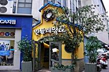 ソウルの繁華街にある風変わりなカフェ。学生や若者に人気!