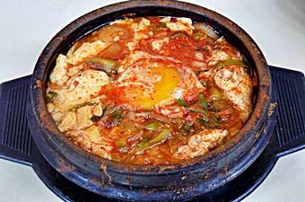 グループで利用するときの、サイドメニューとしてどうぞ。 アサリだしの辛いスープに純豆腐と卵を入れ煮込んだヘルシーなスープ。こちらもお昼のメニューとして人気が高い一品です。