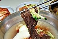 韓国料理の中で麺料理と言えば、冷麺とカルグックスを上げる人は多いでしょう。このうちの冷麺は焼肉の後で食べるもの、という感覚が強いですが、焼肉なしの冷麺だけの専門店があるのの注目しましょう。この「ユルチョン」はそんな冷麺専門のお店。とくに焼肉ナシで冷麺をメインに食べたい人にはお薦めです。特にこの店は麺に葛が混ぜ込まれているチッネンミョン専門でもあります。葛は漢方薬にも使われている材料で、この冷麺も体にやさしい麺になっています。ここの冷麺も、フェネンミョン、ムルネンミョン、ビビンネンミョンの三つのメニューがあります。