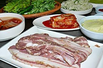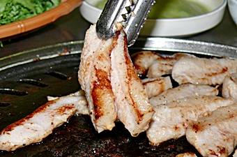 不思議な味の味噌味サンギョプサルを食べてみてください!