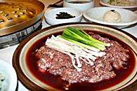 メニューは、ロースが霜降りロース、生ロース、味付けロースの3種類。カルビ類は生カルビ、味付けカルビ、トックカルビ(カルビのミンチを焼くもの)の3種類があります。また、このほかに、ヤングイ(ミノ)、プルゴギなど多彩なメニューが用意されています。また、食事メニューも韓国式釜飯であるヨンヤントルソッパッ、カルビタン、ご飯の友といえるご飯用おかずのケジャンなどもありますので、ゆっくり食事を楽しむことが出来ます。
