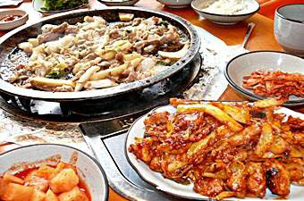 鶏カルビ、唐辛子プルコギ、参鶏湯、タコ鉄板炒めご飯