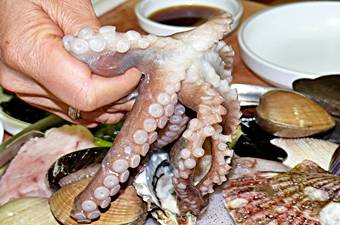 チャガルチ市場で仕入れてくる新鮮な海産物を使ったヘムルタン。オーダーが入るまで水槽内にいたもの。 ヘムルタンではなくそのままお刺身として食べてもいいぐらい新鮮です。