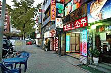 西面にある「ロッテデパート」の後ろに、この「西面市場(ソミョンシジャン)」はあります。2階建ての建物の中は、懐かしい雰囲気が一杯で、西面駅周辺とはまったく異なった世界があります。市場の建物の1階には、アジュマ一人できりもりする小さな食堂が並んでいて、アジョシたちが昼間からお酒を飲んでいたりするのは、まるで映画やドラマのワンシーンみたいです。デパートや免税店、観光ホテルなどでは絶対に見ることのない、ありのままの韓国の原風景があります。また、市場の周りには、プサン名物のテジクッパの専門店や、カルグックス専門店などがずらりと並び、付近の路地は<モクチャコルモク(グルメ通り)>になっています。