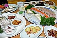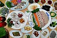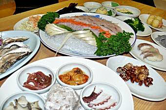 刺身盛り合わせ、刺身ビビンバとメウンタン、魚の卵スープなど