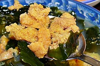 日本では高級食品のウニもこちらではスープにもなります。ウニとワカメたっぷりのスープを口にすると磯の香りがいっぱいに広がります。 アワビ粥もソウルのものと違って済州島のアワビ粥のように内臓も一緒に煮込みます。