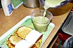 トーストと一緒に新鮮なフルーツを使ったジュースをどうぞ