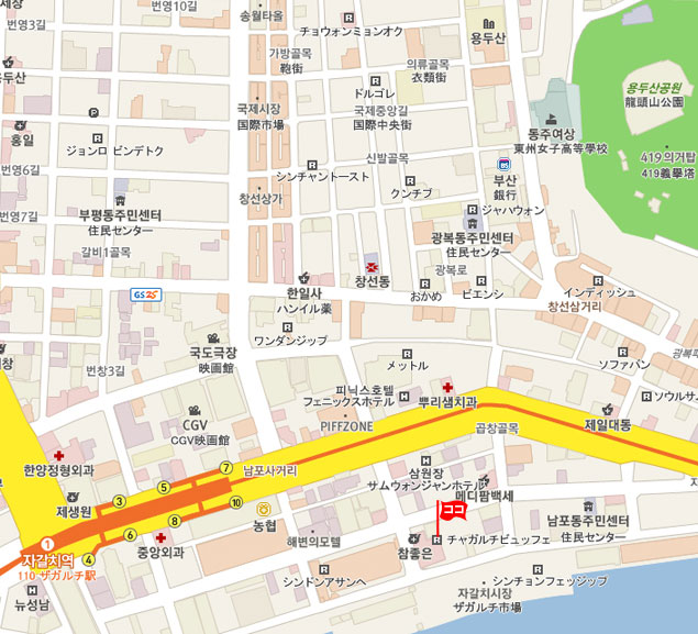 住所 釜山広域市 中区(ジュング)南浦洞5街(ナンポドンオガ)104-1番地