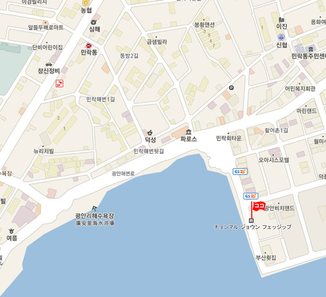 現地 アクセス  地下鉄2号線カンアン(広安・Gwangan)駅5番出口から徒歩約20分
