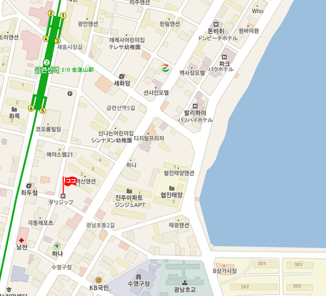現地 アクセス  地下鉄2号線クンニョンサン(金蓮山・Geumnyeonsan)駅5番出口徒歩5分